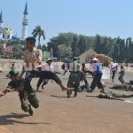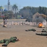 seputartuban.com – Kisah heroik warga Tuban ditampilkan dalam drama kolosal di alun-alun Tuban, usai upacara peringatan HUT RI ke 70. Anggota TNI dan Tater di Tuban memperagakan kisah pengusiran belanda pada 9 Desember 1948.