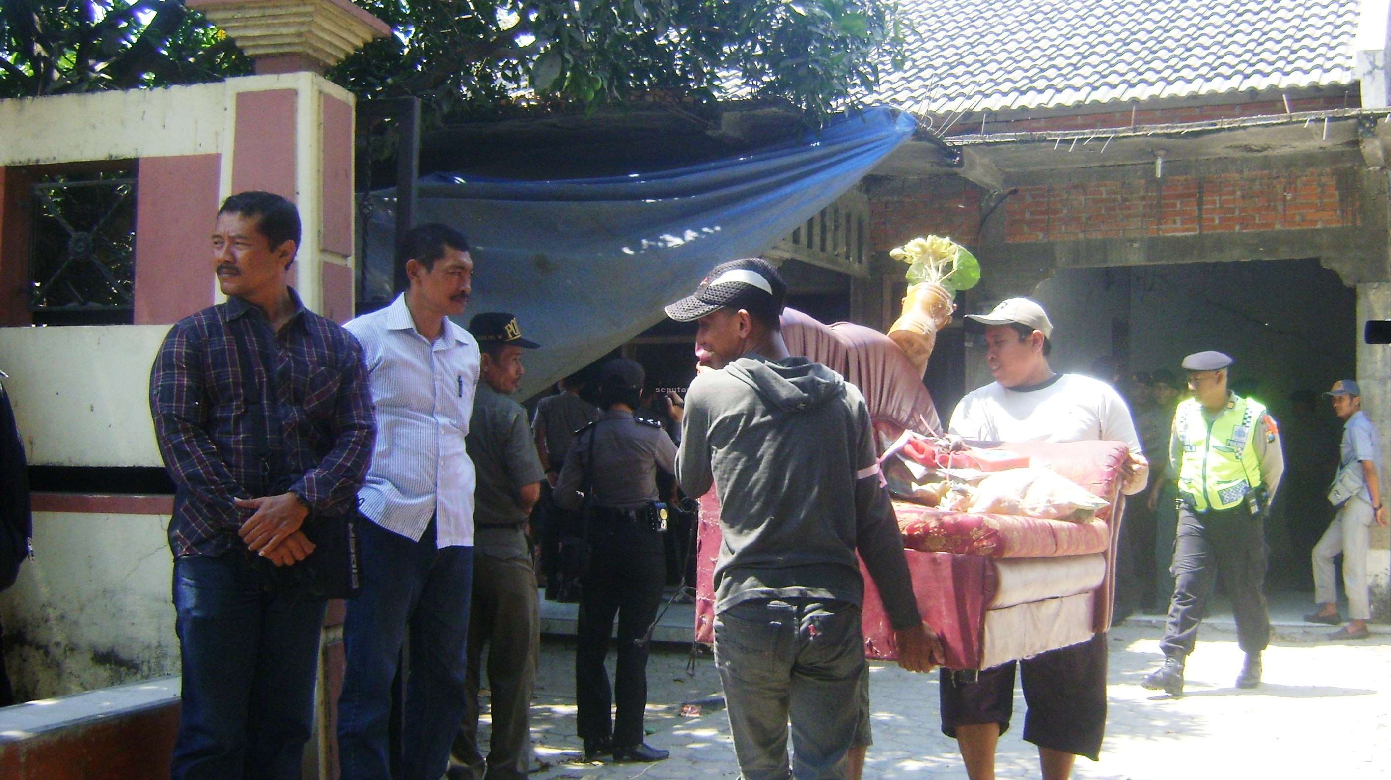 Eksekusi bangunan di atas tanah seluas 172 meter persegi yang bersebelahan dengan Makoramil Rengel yang dipimpin Kabag Ops Polres Tuban Kompol Hanis Subiyono setelah mendapat perintah Panitera Pengadilan Negeri (PN) Tuban Rustamaji, berlangsung tanpa perlawanan. Satu persatu isi rumah digotong keluar hingga tak ada yang tertinggal.
