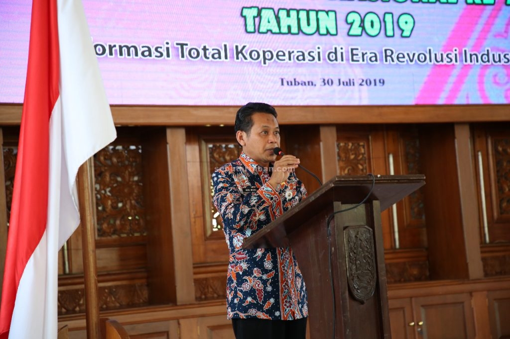 Sementara itu, Kepala Dinas Koperasi, Perindustrian, dan Perdagangan (Diskoperindag) Kabupaten Tuban, Drs. Agus Wijaya, M.AP., dalam sambutannya menyebutkan hingga pertengahan 2019 tercatat jumlah koperasi mencapai 1.277 koperasi dengan anggota 100.282 orang dan tenaga kerja 8.152 orang.