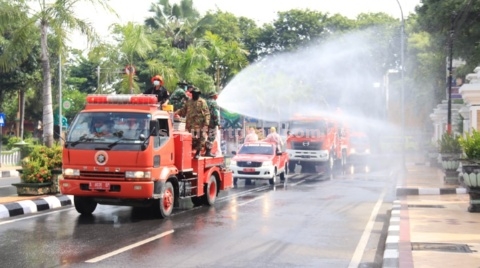 Bupati Tuban, Fathul Huda, dengan didampingi Wabup dan Forkopimda Kabupaten Tuban memberangkatkan tim penyemprotan disinfektan dari kantor Bupati. Dalam penyemprotan disinfektan ini melibatkan dari pihak BPBD, Polres Tuban, TAGANA Dinas PRKP, Dinas Perhubungan dan Dinas Kesehatan Kabupaten Tuban serta Damkar dari PT TPPI.