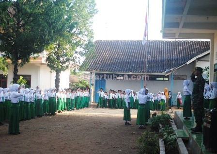 seputartuban.com – Senin (22/2/2016), siswa Madrasah Ibtidaiyah (MI) Ismaliyah P2A, Desa Gaji, Kecamatan Kerek, Kabupaten Tuban menjalankan upacara bendara tidak seperti biasanya. Komandan Komando Rayon Koramil (Danramil) Kerek, Kapten Inf. Warsito menjadi inspektur upacara dan menyampaikan wawasan kebangsaan (Wasbang).