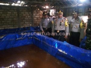 Kapolres Tuban AKBP Nanang Haryono saat konferensi pers, Selasa (1/5/2018) di lokasi penggrebekan mengatakan hasil ungkap kasus itu menemukan modus baru dalam proses produksi arak. Jika biasannya wadah yang dipakai drum, namun yang diungkap adalah berbentuk kolam semi permanen dari bahan terpal.
