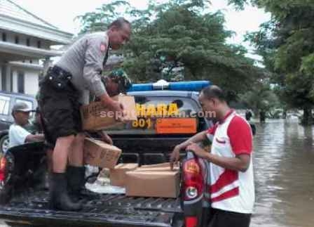 Selain patroli untuk melakukan penjagaan, petugas juga turun langsung membantu distribusi bantuan dari Badan Penanggulangan Bencana Daerah (BPBD) yang diberikan melalui Kades. “Warga banyak yang tidak mengungsi karena rumah mereka tinggi. Sedangkan banjir menggenangi jalanya,” imbuh Kapolsek.