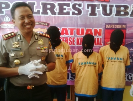 Para tersangka yang telah diamankan ialah Sigit Lisan Budi santoso (26), warga Kelurahan Gedogombo, Kecamatan Semanding. Aris Afrian Fajar (22), warga kelurahan Baturetno, Kecamatan Tuban. Serta Sandi Purnawan (24), warga Desa Tlogowaru, Kecamatan Merakurak, Kabupaten Tuban.