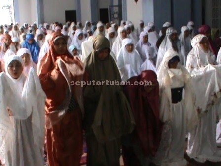 HIKMAT : Jamaah perempuan sholat Kusuf di Masjid Agung Tuban