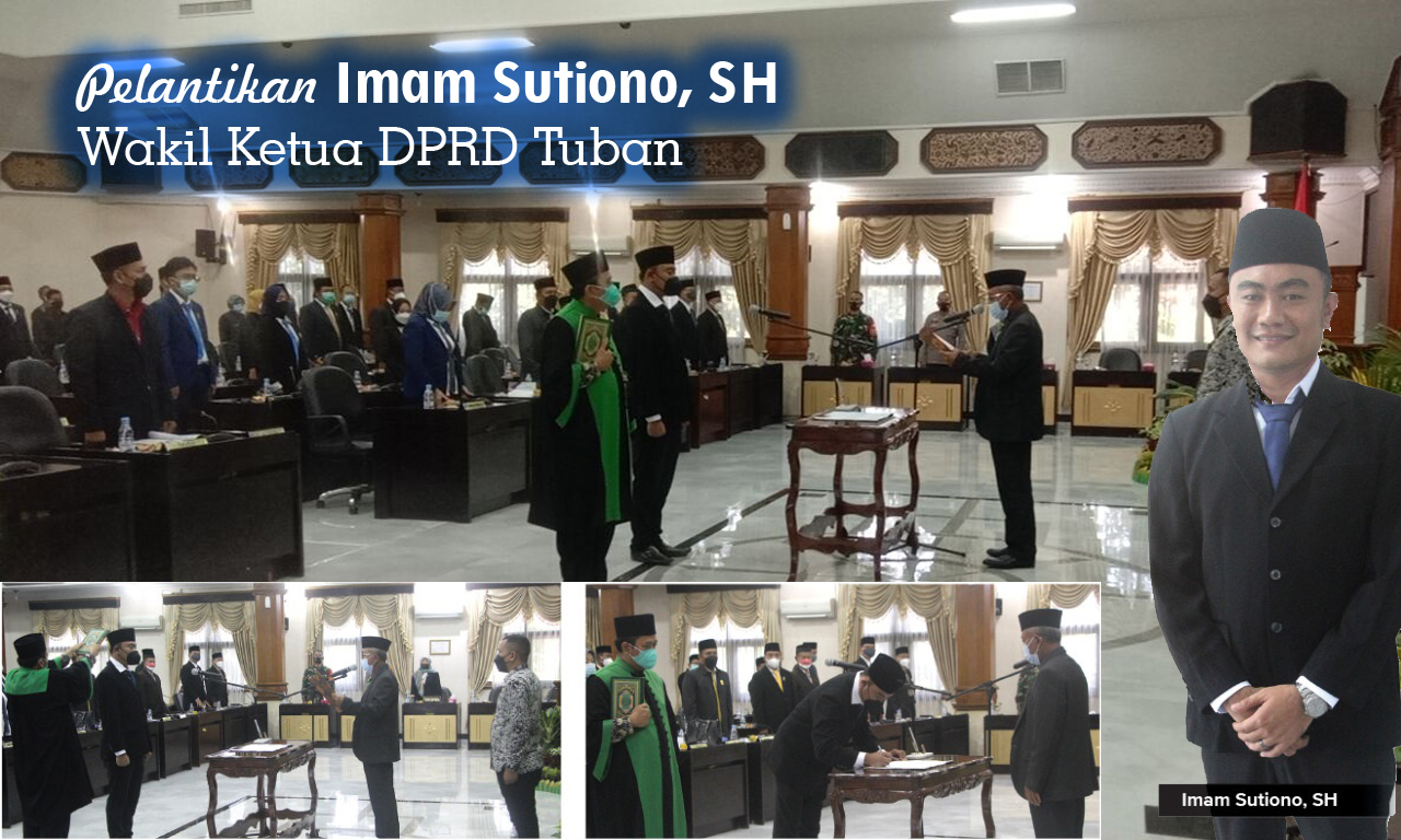 seputartuban.com, TUBAN – Ketua Dewan Perwakilan Rakyat Daerah (DPRD) Kabupaten Tuban, M. Miyadi, memimpin pelantikan Imam Sutiono, SH menjadi Wakil Ketua DPRD Tuban. Dia menggantikan Ilmi Zada hingga 2024 dalam Pegantian Antar Waktu (PAW) ini. Pelantikan dilakukan di Ruang Rapat Paripurna Gedung DPRD Tuban. PAW ini sesuai dengan surat Keputusan Gubernur Jawa Timur nomor 171.414/872/011.2/2021 tanggal 6 September 2021.