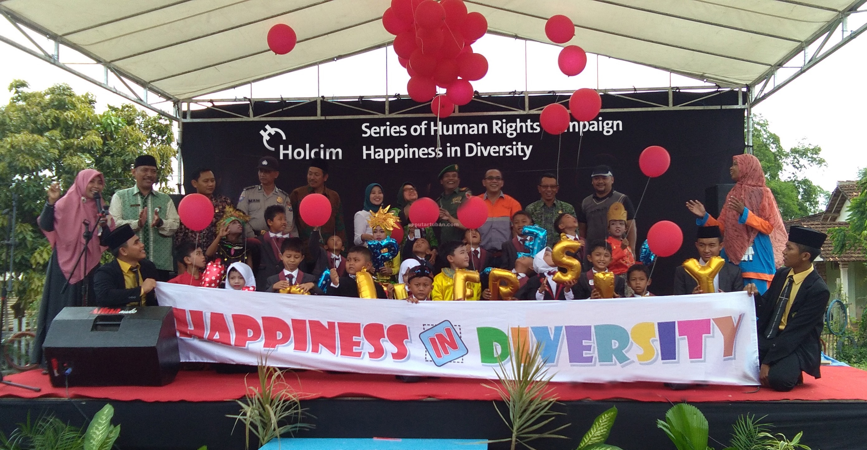 seputartuban.com, TAMBAKBOYO – Sebagai salah satu wujud komitmen akan pengembangan kehidupan sosial, Holcim secara konsisten melakukan kegiatan kampanye anti kekerasan dan menghormati keberagaman dengan sasaran utama siswa siswi serta pemangku kepentingan di sekitar pabrik Tuban. Bertajuk“Happiness in Diversity”, Holcim bersama 400 siswa dari 14 sekolah di sekitar Pabrik Tuban, melakukan peringatan Hari Hak Asasi Manusia Se-Dunia, bertempat di Yayasan Bina Khoir Generation Desa Merkawang Kecamatan Tambakboyo, Kabupaten Tuban, Kamis (20/12/2018).
