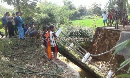 Tergerusnya pondasi jembatan setiap kali sungai itu meluap, mengakibatkan jembatan tersebut Roboh pada minggu sekitar Pukul 15.30 WIB. Jembatan tersebut merupakan akses penghubung satu-satunya masyarakat Dusun Tiwian Desa Kumpulrejo menuju pusat keramaian seperti pasar dan kecamatan.