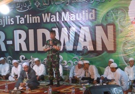 seputartuban.com – Kapolres Tuban, AKBP Guruh Arif Darmawan dan Dandim 0811 Tuban, Letkol Kav. Rahyanto Edy Yunianto sepanggung menyampaikan sambutan penutup tahun 2015. Dihadapan 600 hadirin Pengajian dan Sholawat, Majelis Ta’lim Wal Maulid Ar-Ridwan, Kamis (31/12/2015), di kawasan jalan Pemuda Tuban.