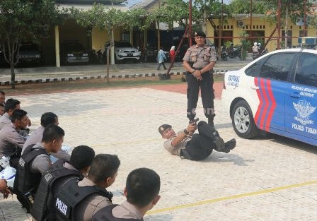 seputartuban.com – Wujud kesiapsiagaan dan keseriusan Kapolres Tuban, AKBP Guruh Arif Darmawan, Senin (18/1/2016) pagi melatih anti teror 67 anggotanya. Mereka dilatih langsung oleh Kapolres dengan berbagai kemampuan taktis menyerang dan mempertahankan diri dari aksi terorisme.