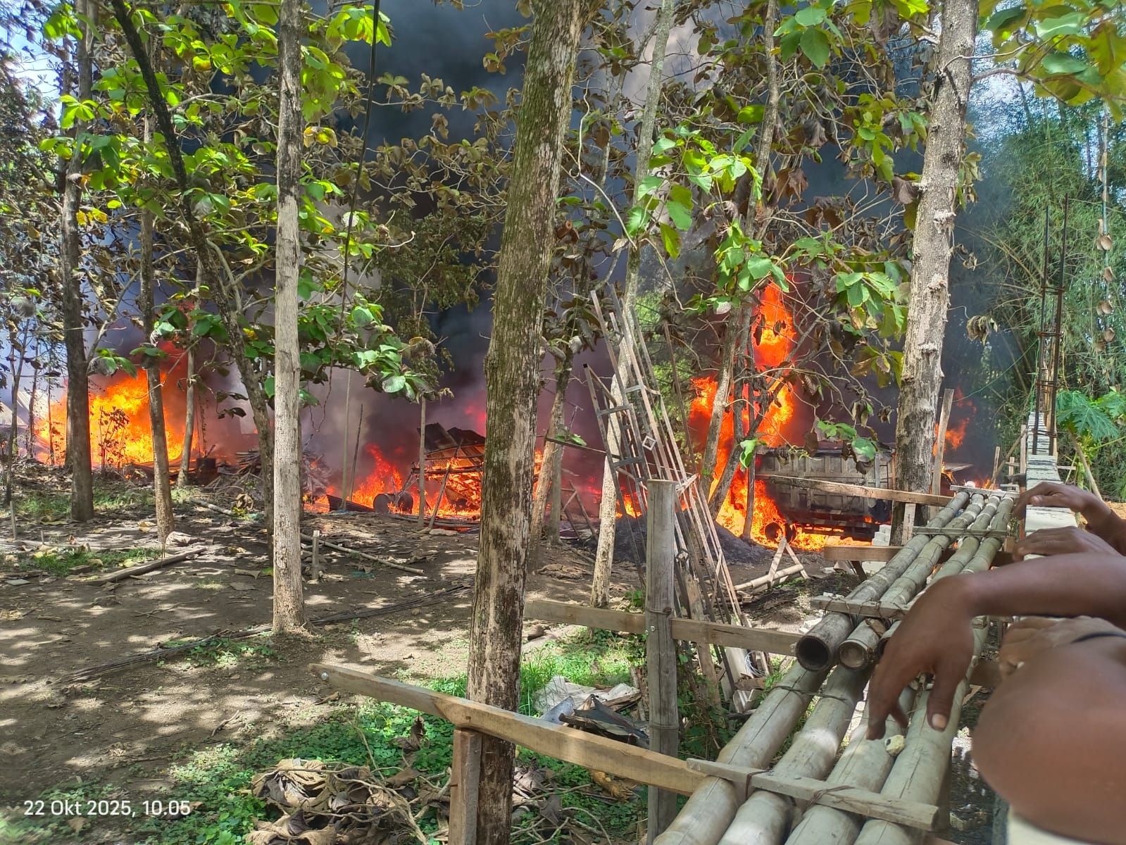 Namun naas, saat bak truk sedang dibuka, tiba-tiba muncul percikan api dari bagian belakang knalpot kendaraan. Api seketika menyambar muatan limbah yang bersifat mudah terbakar, lalu menjalar cepat ke area sekitar. “Apinya langsung besar, nggak sempat disiram. Limbahnya memang kering dan gampang nyamber,” ujar seorang warga yang turut membantu proses evakuasi awal.