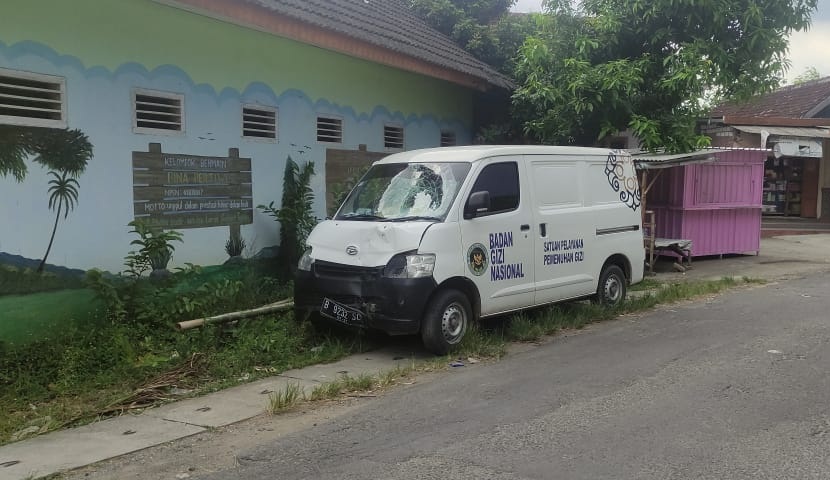 Hingga sekitar pukul 15.00 WIB, kedua kendaraan masih berada di lokasi kejadian. Mobil MBG mengalami kerusakan pada bagian bumper depan dan kaca retak, sedangkan sepeda motor Honda Supra milik korban rusak parah di bagian depan.