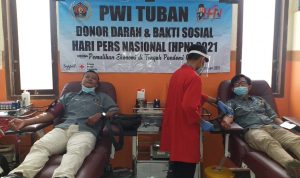seputartuban.com, TUBAN – Persatuan Wartawan Indonesia (PWI) Cabang Tuban menggelar kegiatan bakti sosial donor darah, dalam rangka memperingati Hari Pers Nasional (HPN) Ke-75 tahun 2021, Jumat (5/2/2021).