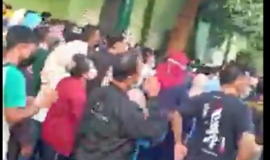 Dalam unggahan video tersebut, nampak terlihat peserta vaksinasi yang berkerumun hingga berdesak desakan di halaman Parkir atau kawasan tenis indoor. Lokasinya berdampingan dengan Mapolres Tuban.