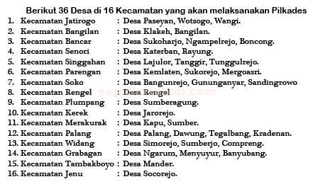 seputartuban.com – Hingga saat ini belum ada dasar pelaksanaan pemilihan kepala desa (Pilkades) di Kabupaten Tuban. Sehingga pelaksanaan Pilkades 36 desa masih belum dapat dipastikan kapan pelaksanaanya.