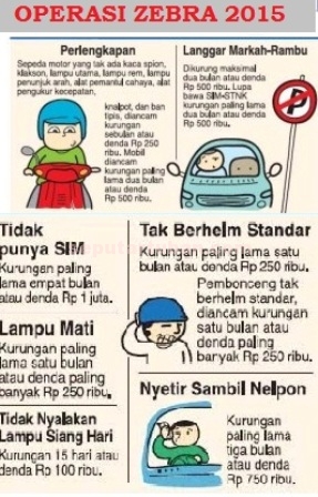 “Selain itu misi operasi zebra ini guna meningkatkan ketertiban dan kepatuhan masyarakat dalam berlalulintas,” kata Jamhari, Rabu (21/10/2015) siang.