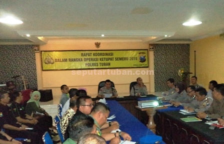seputartuban.com – Menjelang pelaksanaan Operasi Ketupat Semeru 2015, Polres Tuban menggelar rapat koordinasi (Rakor) di ruang Serbaguna Mapolres Tuban, Rabu (08/07/2015) bersama pihak terkait. Dalam kesempatan ini dipaparkan rencana pengamanan selama menjelang dan pasca lebaran.