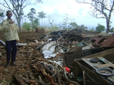 “Kami berharap ada perhatian dari pemerintah kabupaten atas musibah ini. Karena tidak mempunyai uang untuk memperbaiki kembali rumah yang telah roboh ini,” harapnya.