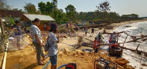 Gotong royong dilakukan selama beberapa hari. Mulai menempatkan batu-batu besar di pinggir pantai untuk menahan gelombang. Selain tu dilakukan perbaikan sejumlah bangunan tersebut sisi luar maupun dalam.