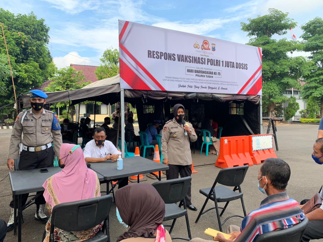 Menindaklanjuti hal tersebut untuk percepatan vaksinasi, Polres Tuban melakukan terobosan dengan menggelar vaksinasi. Ditujukan kepada masyarakat yang berkepentingan di Polres Tuban yang belum pernah divaksin, mulai Rabu (23/06/2021).