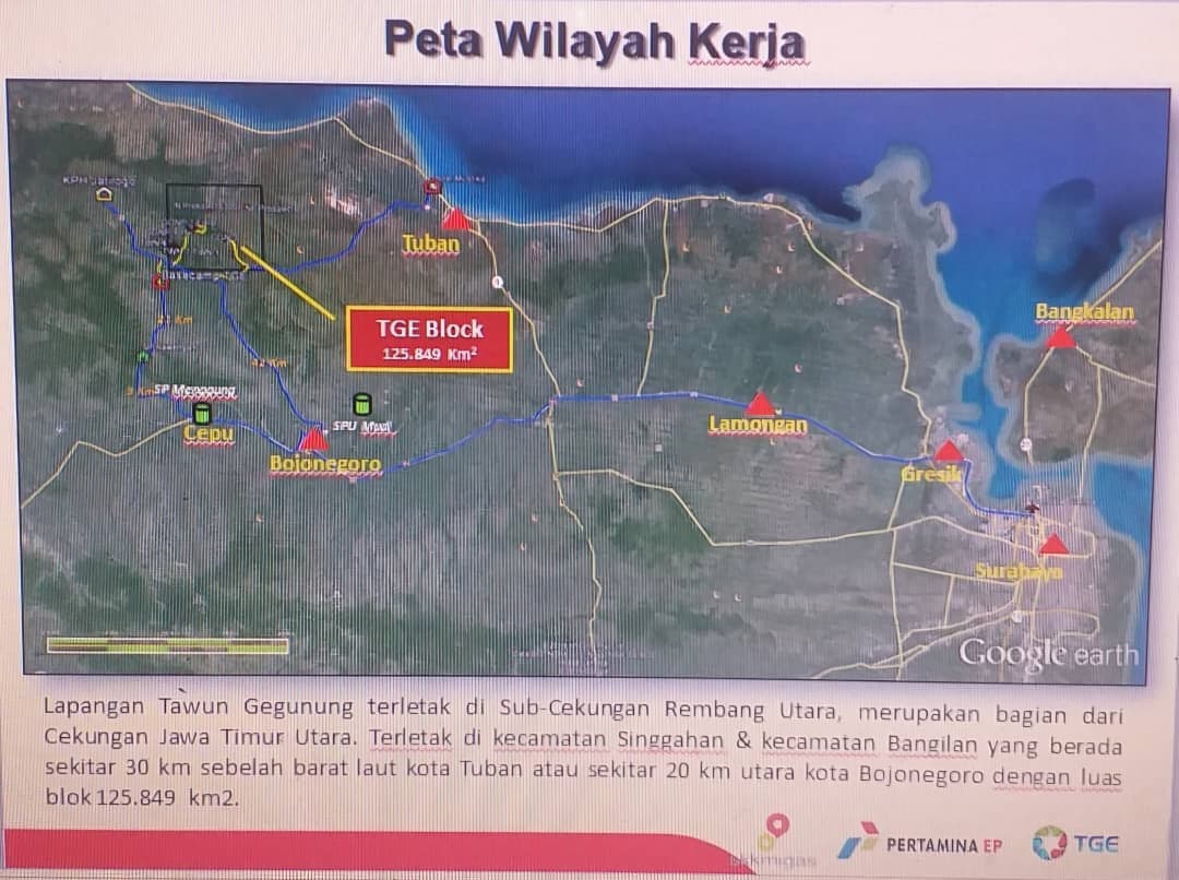 Diketahui, KSO Tawun Gegunung Energi (TGE) adalah mitra Kerjasama Operasi (KSO) PT Pertamina EP yang fokus pada eksplorasi dan produksi minyak di Lapangan Gegunung, Kabupaten Tuban, Jawa Timur. Pada tahun 2025, TGE sukses melakukan pengeboran pengembangan dan workover (pendalaman sumur) di Desa Mulyoagung, Kecamatan Singgahan, Kabupaten Tuban.